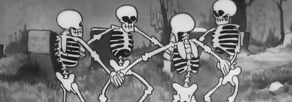 Nel lontano 1929, Walt Disney inaugurò la serie di cortometraggi musicali chiamati Silly Symphonies con The Skeleton Dance, letteralmente una danza di scheletri che emergono da sottoterra e usano le loro stesse ossa per accompagnarsi musicalmente a mo’ di xilofono.